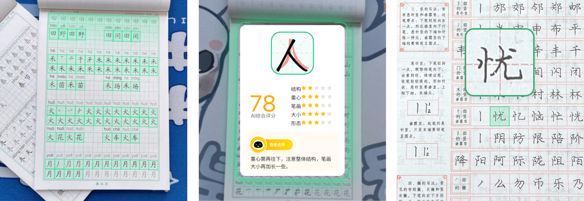 Based on our self-developed AI evaluation algorithm, we provide 1-on-1 intelligent feedback for pen calligraphy works, solving various handwriting learning challenges for children.