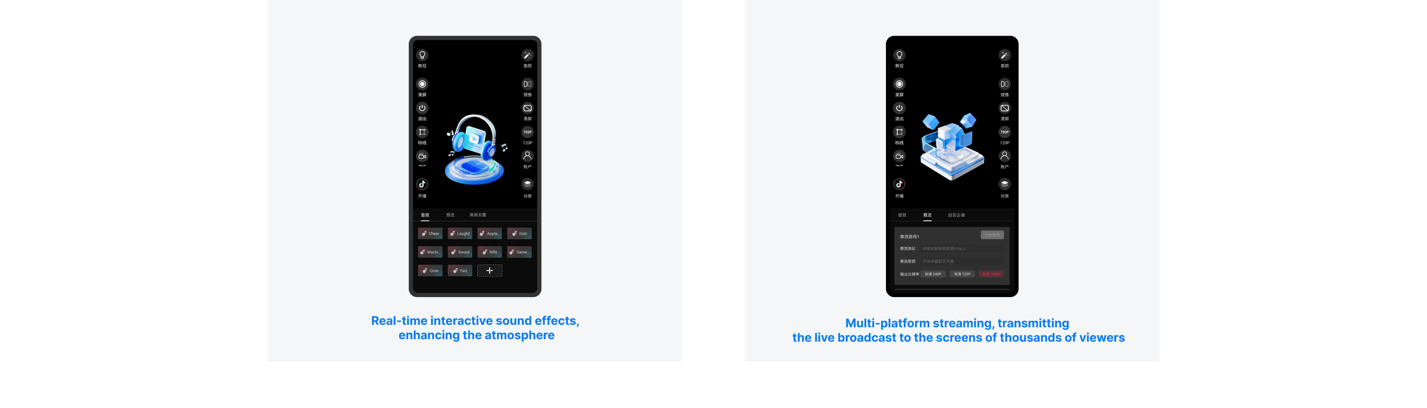 Supports streaming to Douyin, Kuaishou, OBS Studio, and more, ensuring stable transmission and HD quality